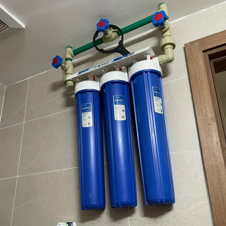 Bộ lọc nước sinh hoạt 20 inch 3 cấp lọc giúp lọc sạch cặn bẩn, rỉ sét, rong rêu, chất hữu cơ và các tạp chất khác lẫn trong nước. Bộ lọc thích hợp dùng
