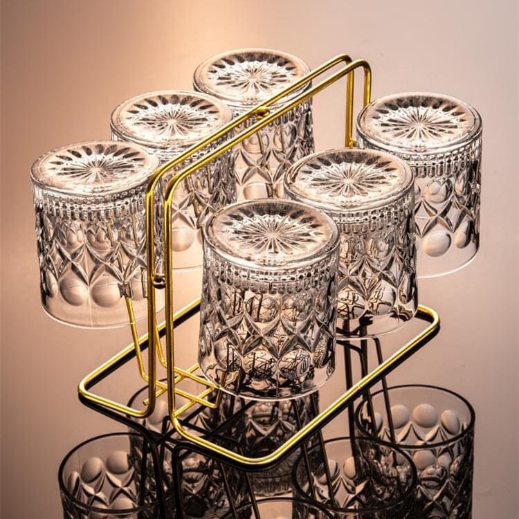 ✨Combo 6 cốc uống nước thủy tinh cao cấp kèm giá úp cốc mạ vàng