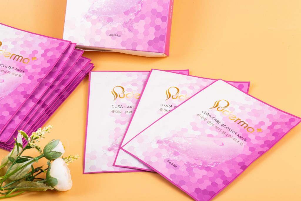 Mặt nạ hồng Puderma Cure Care Booster : thiết kế đặc biệt dành cho Da Dầu, Da Nhờn: dưỡng da, cung cấp độ ẩm sâu cho da, giúp làm giảm lượng dầu, làm mờ vết thâm trên da, giúp làm dịu da.