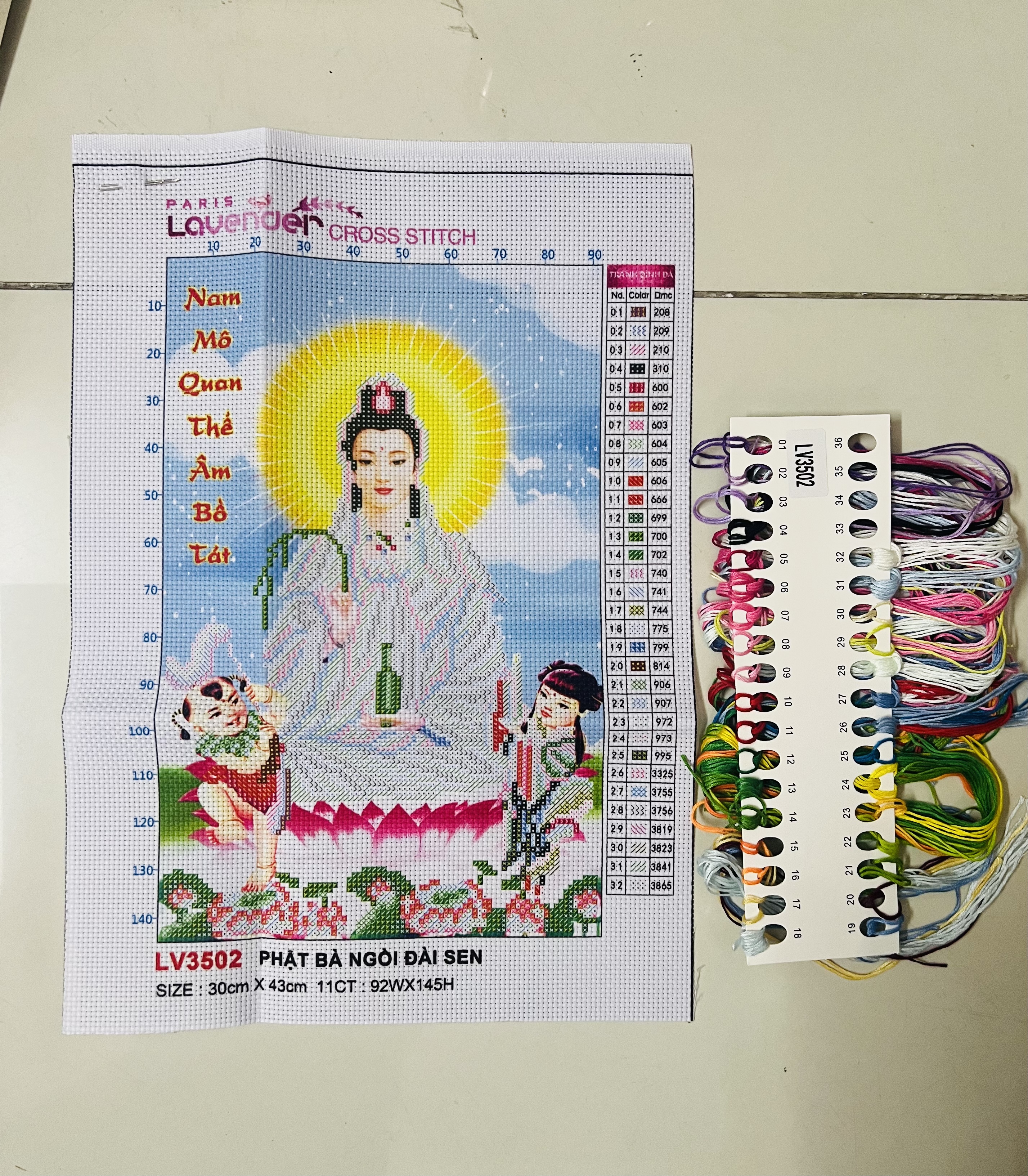 ✨Tranh thêu chữ thập Phật quan âm LV3502, kích thước 30*43 cm
